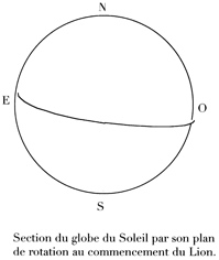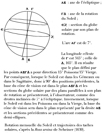 (6) On comprend que l'axe de rotation du Soleil est dans le même plan que l'axe du cône visuel. Ce plan est, évidemment, orthogonal au plan de l'écliptique.