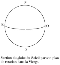 debba finire il suo periodo più tosto in un anno, come dependente dal moto annuo per l'eclittica, che in ventiquatt'ore, come dependente dal moto diurno sopra i poli dell'equinoziale. On sait que ces textes constituent la paraphrase de textes de Scheiner : «Les Pôles sur lesquels tournent les Taches sont au nombre de deux, le Pôle Austral et le Pôle Boréal, opposés l'un à l'autre, et ils sont affectés de mouvements opposés ; et l'un des deux s'avance toujours, la moitié de l'année, dans l'hémisphère apparent du Soleil, l'autre, dans l'hémisphère caché, et celui qui est visible tourne toujours de l'occident vers l'orient, et celui qui est invisible, de l'orient vers l'occident : le pôle austral se lève dans la Statio rectilinea d'Hiver, aux alentours du début du mois de Décembre, époque à laquelle le pôle boréal se couche ; à l'époque de la Statio d'Eté, en revanche, c'est le pôle austral qui se couche, dans la région polaire Sud-Est, aux alentours du début Juin, et que se lève, dans la région Nord-Ouest, le pôle de l'Aquilon ; et c'est ainsi que ces levers et couchers alternés des pôles en Mouvement, qui emportent les axes autour desquels tournent les Taches, prennent toujours une année.» (9). On sait aussi la raison que voyait Scheiner pour que la révolution de l'axe du Soleil devait avoir une période annuelle, plutôt qu'une période diurne : «Le premier est un mouvement local, par lequel le Soleil, tous les vingt-sept jours environ, accomplit une seule révolution sur son propre centre, et, par l'effet de cette conversio, répand avec abondance tout ce qu'il renferme de lumière, tout ce qu'il renferme de virtus radiosa, tour à tour, à la fois sur la terre et sur l'ensemble du ciel et jusque sur chacun des astres en particulier ; et que cette circuitio a été sans doute attachée au Soleil par le Créateur en vue, particulièrement, de la terre, paraît résulter clairement de ce qu'elle n'est pas simple, mais se compose <aussi> d'une circumductio annuelle de l'axe en mouvement, sur lequel s'accomplit le mouvement